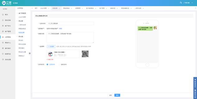 d、保存-创建任务,系统会通过 “艾客助手” 通知选中的员工,那个管理员给他们分配了客户资源。
