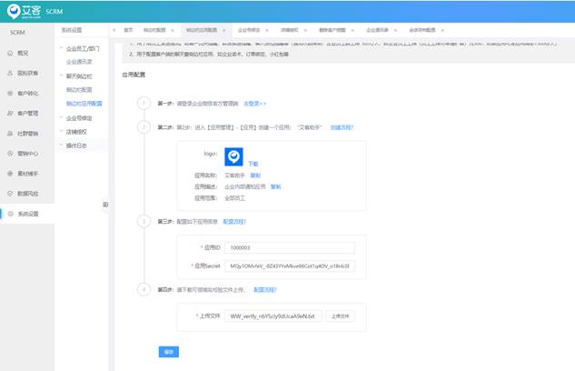 主要用于绑定企业微信后台,连接数据,否则将无法关联使用;